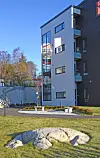 areal. I tillegg er det opparbeidet et utomhusanlegg med variert innhold og ulike valgmuligheter for aktivitet. Utfordring med støy fra Hatvikvegen ble løst ved å trekke hovedsoverom på utsatt fasade ut fra bygningskroppen og lage en skjermet og støyfri luftebalkong i tillegg til vinduer med utsikt, sier Mossige.
