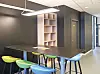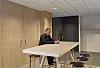 – Tomtens store bredde gjorde det nødvendig med innslipp av dagslys til et atrium fra overbygget glasstak. I kjernen på plan 2 er det innredet en stor åpen kantine som har delvis åpen kontakt til kontorer i etasjene over, samt visuell kontakt med resepsjonsområdet. Den avklarte modulisering inspirerte til stram fasadekomposisjon. Ved en rytmisk plassert utvendig ramme for persienner er fasadene tilført sin enkle identitet, sier Lund.