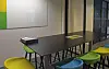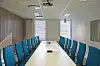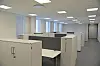 Det er i stor grad belegg på gulv i kontorer og korridorer (med myk underside for å dempe trinnlyd). Inngangsparti, trapper og våtrom er flislagt. Kontorene har systeminnredning. Det er eikespiler med lyddempende materialer i felles-