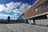 Paulsen trekker frem de store glassarealene i fasader i tillegg til mange ulike nivåer på tak i forhold til tekking som skapte utfordringer i forhold til tett bygg, og oppstarten på innvendige arbeider. Det er to glasstak i fasaden. Det ene i annen etasje gir lys til fellesareal (museum og bibliotek) i første etasje. Gangbrua som binder sammen museets utstilling i U1 og U2 er støpt i bue. Det samme gjelder glasstaket over som gir lys til arealer under. Buen fremstår utvending som en del av utomhusarealet. Det er bygget ny nedgang til parkeringsanlegget fra utearealet i plan 1 i et sirkelrundt frittstående bygg.