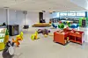 – Biblioteket vil dessuten markere seg gjennom et to etasjers høyt amfi som danner en visuell fortsettelse og et fondmotiv for nordre del av Kongens gate. Under dette amfiet ligger bibliotekets barneavdeling, felles hovedinngang for kulturetatene, samt museets mottakshall. Byggets interiør er tenkt som et åpent hus som man kan vandre fritt i innenfor åpningstidenes begrensninger. Dette gjelder også bankens luftige hovedrom som kan benyttes til utstillinger og mindre konserter. Tanken er at huset skal fungere som et kulturelt møterom for Narvikregionen, der en felles foajé skal betjene både bibliotek og museum. I tillegg vil det være arealer for kultur- og kunnskapsrelaterte aktiviteter som Destinasjon Narvik, Newtonrommet eventuelt også Narvik kunstforening. I foajéen vil det både være faste og flyttbare bord og sitteplasser for enkel servering, samt plass for temporære utstillinger, forteller Krogdahl.