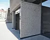 Her er stålplater hamret ut i et bølget mønster. Fasaden skaper en kontrast til den eksisterende bygningsmassen som er tegnet av arkitekten Erling Viksjø med frilagt betong. Bård Breivik rakk å sette opp fasaden før han døde av kreft 10. januar 2016.