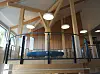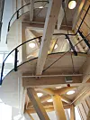 I de nye vrimlearealene er det brukt limtre i konstruksjonene, der også søylene er i tre.
