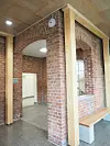 Nødvendige forsterkninger av gjenstående bygningsmasse er utført med stålkonstruksjoner.