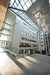 Selv om gårdsrommet var intakt og hadde et eksisterende og heldekkende glasstak, var atkomstsituasjonen fra gatenivået i øst langt fra optimal. Det er et storslagent gårdsrom som tidligere ikke syntes utenfra.