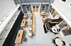 Den store iøyenfallende forandringen er oppgraderingen av fellesområdene med lysgården med glasstak. Atriet er malt opp på nytt og har nytt kantinekjøkken. Det er terrazzo på gulv og i trapper. Taket av en ny mesanin er nå en del av kantineområdet, hit er det også etablert en tverrforbindelse i form av en ny bru. Tidligere var det bruer i annenhver etasje. For å gjøre kommunikasjonen mellom fløyene vesentlig mer effektiv og rasjonell, skal det ytterligere tre nye bruer på plass før prosjektet er helt ferdig.