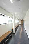 – I gymsalbygget var det garderober med knapp ståhøyde og dragere på kryss og tvers. Takhøyden er økt med 80 centimeter. Vi gravde oss altså vesentlig lenger ned – vi traff også på fjell som måtte pigges – for å kunne isolere og bygge opp nye dekker. Heldigvis hadde bygningsmassen mange angrepspunkter, den er totalt 230 meter lang. Det betød at vi kunne drive med dette samtidig som arbeidet med riving av paviljongene og oppføring av tilbygget pågikk, sier Bredesen.