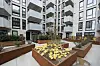 Begge Sørengstrandas to byggetrinn har hver sin hesteskoform med et gårdshager i midten. Gårdshagene med beplanting og benker er private, men er åpne for fri ferdsel. Gårdshagene er tilbaketrukket og løftet opp fra Havnepromenaden til hvert sitt nivå. Gårdshagen i byggetrinn 1 ligger på nivå med gaten Sørengkaia i øst, mens byggetrinn 2 sin gårds-hage ligger en etasje over. Det er gjennomgang fra Sørengkaia ned til den brede Havnepromenaden langs bryggene.
