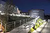 – Stovner Senter har med en ny hovedinngang og et bydelstorg endelig vendt ansiktet mot byen, sier Ritto. En del av det nye ansiktet er den nye fasaden i to plan mot best. Den er kledd med elokserte og perforerte aluminiumsplater, som har monterte lys som lyser oppover og danner et motiv av fjelltopper.