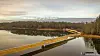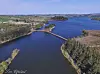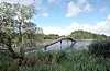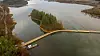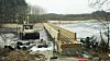 – Frykten var å møte bunnløs sump, men det gikk bedre enn ventet, sier daglig leder Karl Bjørnevik i Sunnhordland Marin. Mannskapet har bygget brua fra en 15 meter lang båt på Frøylandsvatnet. Den stakk bare 75 centimeter ned i vannet, og det holdt akkurat.