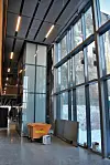 Vestibylen inneholder også felles møterom i isolerte containere, og med adkomst til tro trappekjerner samt en felles kantine.