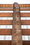 Bygget har et generelt fasadeuttrykk med horisontale vindusbånd og en skarpskåret detaljering. Første etasje er åpen mot gateplanet med mye bruk av glass. Hjørnet som vender ut mot havnebassenget har et stort glassfelt som understreker byggets vertikale gavl.
