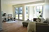 I stedet for å vente på at gresset skal gro før uteområdet blir pent, er det lagt ferdigplen. Mellom blokkene er det laget en felles terrasse med sitteplasser og utsikt ut mot sjøen.