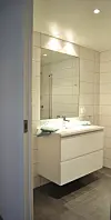 – Her er det ikke noe kjip standard. Byggherren har vært opptatt av finishen, og har lagt penger i å lage pene fellesarealer både ute og inne, forteller prosjektlederen.