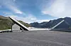 Betongplattformen Utsikten med de tre snippene er på hele 800 kvadratmeter og inneholder parkering, kjøreareal, utkikkssteder og sittekanter. Under den ene snippen er det et servicebygg med teknisk rom og toaletter, som får energi fra solcellepaneler lagt i amfiets skråning mot sørvest. Vann til toalettet kommer fra et borehull i nærheten.