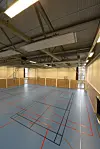 Flerbrukshallen ligger mot sør, og har en spilleflate for basket og volleyball, samt fire garderober med dusjanlegg. Under hallen er det en parkeringskjeller for 45 biler.