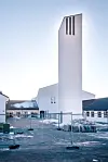For Hille Melbye Arkitekter var det viktig å forholde seg til den eksisterende delen av kirken når det skulle tegnes nytt kirkebygg. Det er et samspill mellom materialet i gammel bygningsmasse, som er hvitmalt Leca, og hvitpussede overflater i det nye.