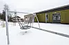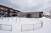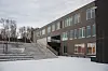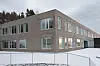 Luhr skole er på tre etasjer, men det fallende terrenget gjør at det er mulig å nå bygget på alle plan, fra første opp til andre og videre opp til tredje etasje.