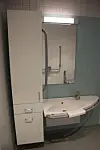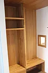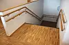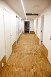 Det er utstrakt bruk av eik treverk innvendig på Nesbru sykehjem, og det gjør seg gjeldende både i gulv, trapper, håndløpere og fendring langs gulv, samt i garderobene på beboerrommene.