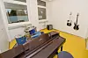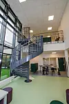 Bygg F utgjør 2.294 kvadratmeter, og inkluderer bibliotek og aula, i tillegg til både kontorer og undervisningslokaler. I bygg D er også kantinefasiliteter, musikkavdeling, naturfagslaboratorier og en stor felles matsal. Det nye bygget har passivhusstandard, og ved trykk-