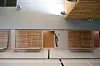 Mens takvannet går i et fordrøyningsbasseng, er det en annen løsning for overvannet på plassen for publikumsparkering. Over flere lag med pukk er det anlagt et permeabelt dekke av belegningsstein. En glippe mellom steinene gjør at overvannet skal renne gjennom, og dermed forsinkes før det renner ut i det offentlige avløpsnettet.