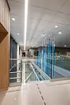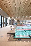 Bassengene i svømmedelen har alle forskjellige høyder opp til taket. – Det er avtrapping tilpasset bruksområdene. Ved stupeanlegget er det høyest før det trapper ned til velvære- og terapiavdelingen innerst. Det er en naturlig inndeling av sonene, det blir mer intimt jo lenger inn i anlegget man kommer. Det er jobbet mye med dagslys og innvendig belysningskonsept for å få riktig belysning inn i arealene. Svømmedelen har hele tiden kontakt med hovedatkomst og aktivitetsplassen utenfor, forklarer Fuglu.