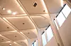 – Kirken har to separate tekniske anlegg. Det ene er med kjøling og betjener underetasjen og kontoretasjen. Det andre er tilluft til kirketorg og kirkerom, og her ligger altså avtrekket plassert utvendig bak fondveggen. Det var et krav om at lyden av kirkeklokkene skulle nå ut til alle fire sider. Men siden klokkene er plassert inne i veggen mot øst, klarte vår akustiske rådgiver å beregne en løsning der lyden blir slynget ut av sluser i taket. Nå når klokkelyden også ut til byens sentrum i vest, sier Karlsen.