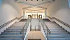 Alt dette var mulig å få til på grunn av en nå heller utradisjonell løsning; selve kirkerommet er løftet en etasje. Den buede hvelvingen i et høyreist katedralliknende kirkerom ender opp i en 14 meter høy fondvegg. Søyler og vindusrekker drar oppmerksomheten mot kommende altertavlen og orgelet. Rommet skal kunne ha 500 sitteplasser.