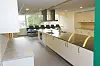 Gulvene er belagt med vinyl, og inngangspartiene er flislagte. Også badene er flislagte på gulv og vegger. Utvendig er taket kledd med folie.