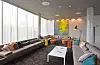 I lobbyen er det en kombinert resepsjon og bar, en barception. Det er knapt 200 meter å gå til det nye terminalbygget på Bergen lufthavn Flesland, som tas i bruk i august i år.