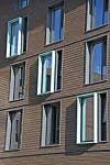 – For å dekomponere fasadene benyttes det horisontale bånd (brannbeslag) per etasje, og en variasjon av liggende kledning i form av skiftende bord-bredder med vertikale brudd. Det legges opp til en lys og naturlig fargepalett, med innslag av lakkerte aluminiumsplater med friske farger. Vi har lagt vekt på store glassflater i rommene, som gir rommene en luftig følelse og sikrer rikelig dagslys og kontakt med naturen ute. Cirka 15-20 prosent av vinduene er planlagt med en lakkert aluminiumsramme, som bygger videre på dekomponeringen av fasadene.