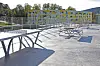 På taket av blokk R ligger det en felles takterrasse med sittegrupper og et bordtennisbord. Foran blokkene er det sittegrupper.
