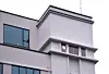 Hotellbygget har bærende konstruksjon i plasstøpt betong. Taket bæres av q-dekker og har tekking med sedum-planter. Det har fall mot bakgården. Fasadene har sto-puss i hvitt og blått.
