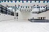 Prosjekthallen har et kubbegulv som består av 100.000 klosser av furu, lagt for hånd.