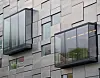 Fasadene har sandwichelementer med påhengte kassetter. Noen av vinduene er store og bygget har elleve godt synlige karnapp som gir bygget et særpreg og brukerne en fantastisk utsikt. Mot den store plassen foran bygget er det en stor glassfasade.