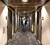 Det er tepper og parkett på møterom, stående industriparkett og tepper i konferansesalene, parkett på rommene, tepper i korridorene og flis og parkett i fellesarealer. Veggene er faste, av gips eller betong. Hotellet har både systemhimlinger, faste himlinger og spilehimlinger.
