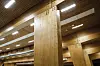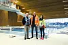 Det er to interessante hovedtrekk ved konstruksjonen i bygget. Det ene er at det består av 6.500 kubikkmeter plasstøpt betong. Det andre er de enorme laminerte bjelkene i massivtre i taket på idrettshallen.