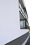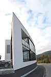 Over kjellernivå er det valgt bæresystem i stål og hulldekker og tradisjonelle yttervegger i treverk. Kontorbygget har hvit pussfasade kombinert med et stort innslag av glass.