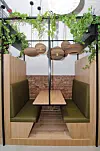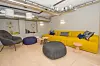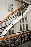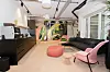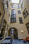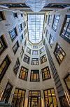 Himlingene inngår i et interiør som har et langt mer moderne uttrykk enn det de vernede fasadene skulle tilsi. Leietaker Regus Business Centre har helt siden kontraktsignering med bygg-herre T8 Holding, vært tungt inne i prosessen, og hatt med sin egen interiørarkitekt for å utforme Spaces-konseptet, et kontorhotell hvor brukerne leier kontorplass og -fasiliteter i avgrensede perioder.