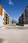 Leilighetene fremstår som lyse og åpne, med solfulle markterrasser og balkonger. Svalgangene som begge blokkene har gir en ekstra uteplass, som egner seg godt til morgenkaffen.
