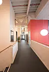 – Vi delte opp bygget ved å endre takformen og høydene i fasaden. Når det gjelder overflatene, er det nå et rent trebygg uten noe overflatebehandling. Det er i hovedsak synlig trevegger og bærekonstruksjoner som gir et robust og rustikk utseende. I kontordelen er det variasjoner med beis eller børstede overflater, forteller Bergdal.