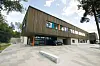 Idrettshallen som ble en del av prosjektet, er bygget sammen med den gamle hallen med felles inngangsparti. Hallen er en flerbrukshall på størrelse med en håndballbane med garderober. Et smart grep inne i hallen er at man har bygget inn ribbeveggene, slik at de ikke stikker ut i selve hallen.