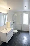 – Himling er betongdekker og lydgulv med innstøpt gulvvarme med parkett og fliser på oversiden, sier Fredriksen.
