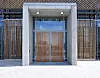 Kirkens hovedinngang ligger i skillet mellom mellombygget og kontordelen. Utenfor bygget ligger en kirkegård og en åpen plass som viser den gamle kirkens foravtrykk.
