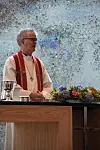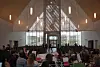 – Vi valgte en løsning med et høyt kirkeskip, et mellombygg med en etasje og en administrasjonsdel i to etasjer. De fleste besøkende kommer fra vest, som er den fineste veien å komme til denne kirken, nær kirketårnet. En meter tykke vegger og hvite slemmete vegger gir inntrykk av at det er en steinkirke. Det store og høye taket på kirkeskipet var utfordrende. Vestveggen i glass med utvendig kledning av spiler og bæring av stål er spesiell. Prosjektet er gjennomført i et meget godt samarbeidsklima og med en fornøyd byggherre, sier Sole.