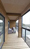 Boligblokken har fem etasjer og rommer 42 leiligheter med størrelse fra 50 til 100 kvadratmeter. Alle leilighetene har egne terrasser eller balkonger, mange av dem er innglassede. Både sykehjem, boligblokk og kjøpesenter har universell tilgjengelighet.
