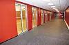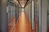 Bygget har standard vinduer med tolags glass og trerammer, mens de 485 dørene er av stål og tre. Belysningen er i stor grad LED-lys.