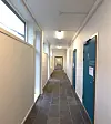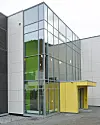 – Byggetrinn 1 har en hovedinngang med en større vestibyle og kantine. Det skulle derfor ikke lages noen ny hovedinngang. Byggetrinn 2 har en lineær struktur. Retningen gir mye seg selv både ut fra det som var byggeområdet og at mange elever kommer med buss og vil ha tilkomst i enden av denne lineære strukturen. Vi har laget et inngangsparti mot vest som er ganske åpent. Fra inngangsplanet er det mulig å se alle tre etasjer bygget inneholder. Halvveis i byggets lengderetning har vi vridd ut den ene ytterveggen. Det gir litt dynamikk til den indre kommunikasjonsåren, sier Fonsdal.