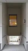– Vi har hatt en utfordring i sammenbygningen med byggetrinn 1. Det var ønskelig å få en utvendig trapp gjennom/under sammenbygningen får å få god utendørs kommunikasjon mellom idrettshallen og uteområdet i sør. I tillegg var den enden på byggetrinn 1 der vi skulle koble oss, på veldig smal. Den første problemstillingen var en høydeutfordring siden det var ønskelig med gjennomgang på alle plan. Det har vi løst. For den andre ble vi reddet av et ønske om en terrasse i forbindelse med personalrommet. Da kunne vi øke dybden på byggetrinn 2 uten å miste fasade på byggetrinn 1, forteller Fonsdal.