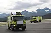 Utrykningskjøretøyene står hele tiden koblet på lading, motorvarmer og trykkluft. Brannstasjonen rommer garasje for inntil seks brannbiler, med tilhørende funksjoner for brannberedskap, verksteder, vaskehaller for flyplassens snøryddingskjøretøy og administrasjonslokaler.